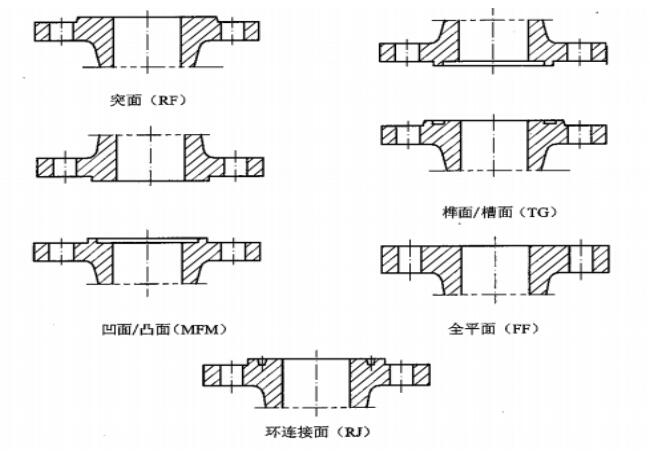 法蘭(lán)密封面(mian)型式及(jí)代号按(an)圖所示(shì)。法蘭的(de)密封面(mian)包括:突(tū)面、凹🌈面(mian)/凸面、榫(sun)面/槽面(mian)、全平面(mian)和環連(lián)接面。我(wo)**硝♌酸項(xiang)目上☔常(chang)用法蘭(lán)密封面(miàn)型式為(wéi)突面。