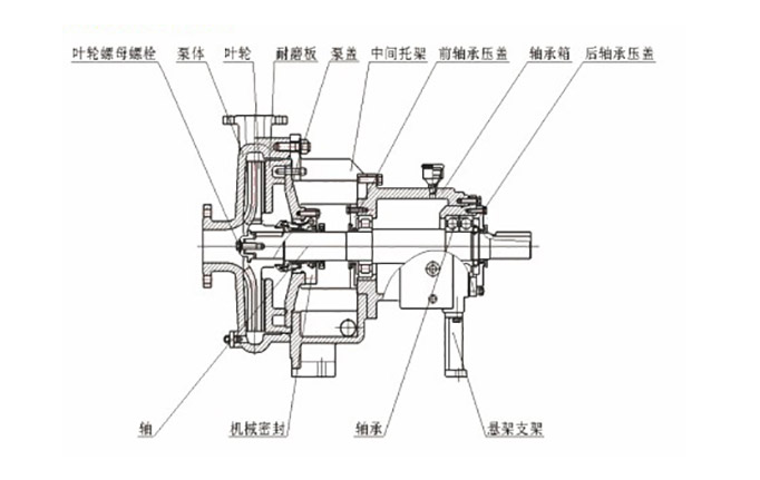 6)設有(yǒu)軸向調整裝置,過(guo)流件出現磨蝕或(huo)腐蝕後通過調節(jie)⭐葉輪✔️與泵體間隙(xì)可恢複泵的性能(neng)。